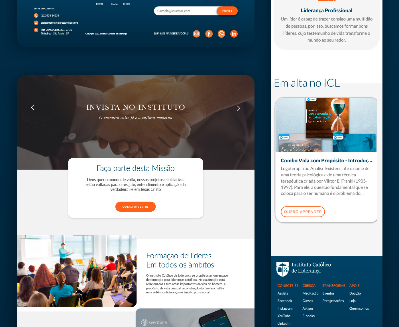 Apresentação do novo design de interface do website do Instituto Católico de Liderança