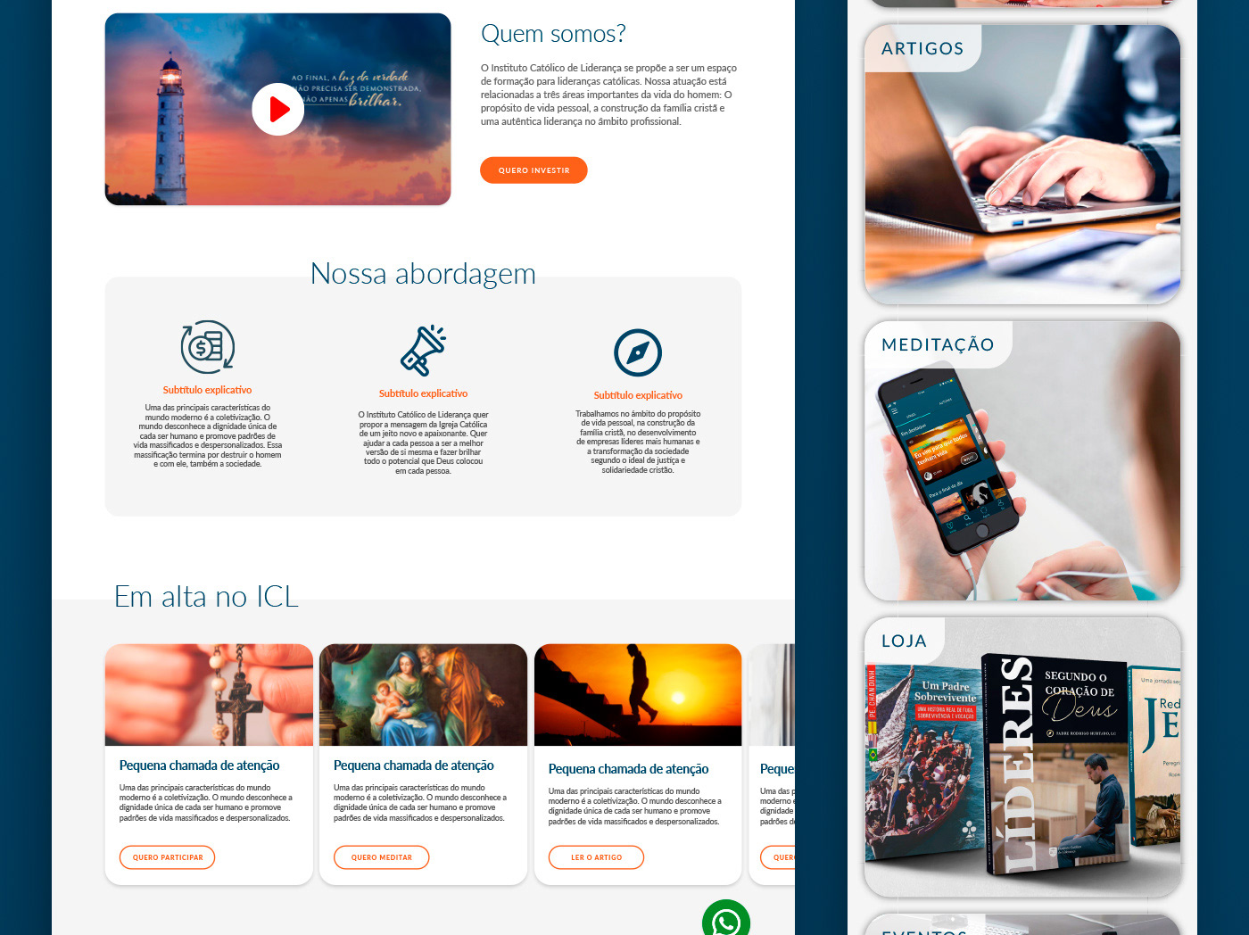 Apresentação do novo design de interface do website do Instituto Católico de Liderança